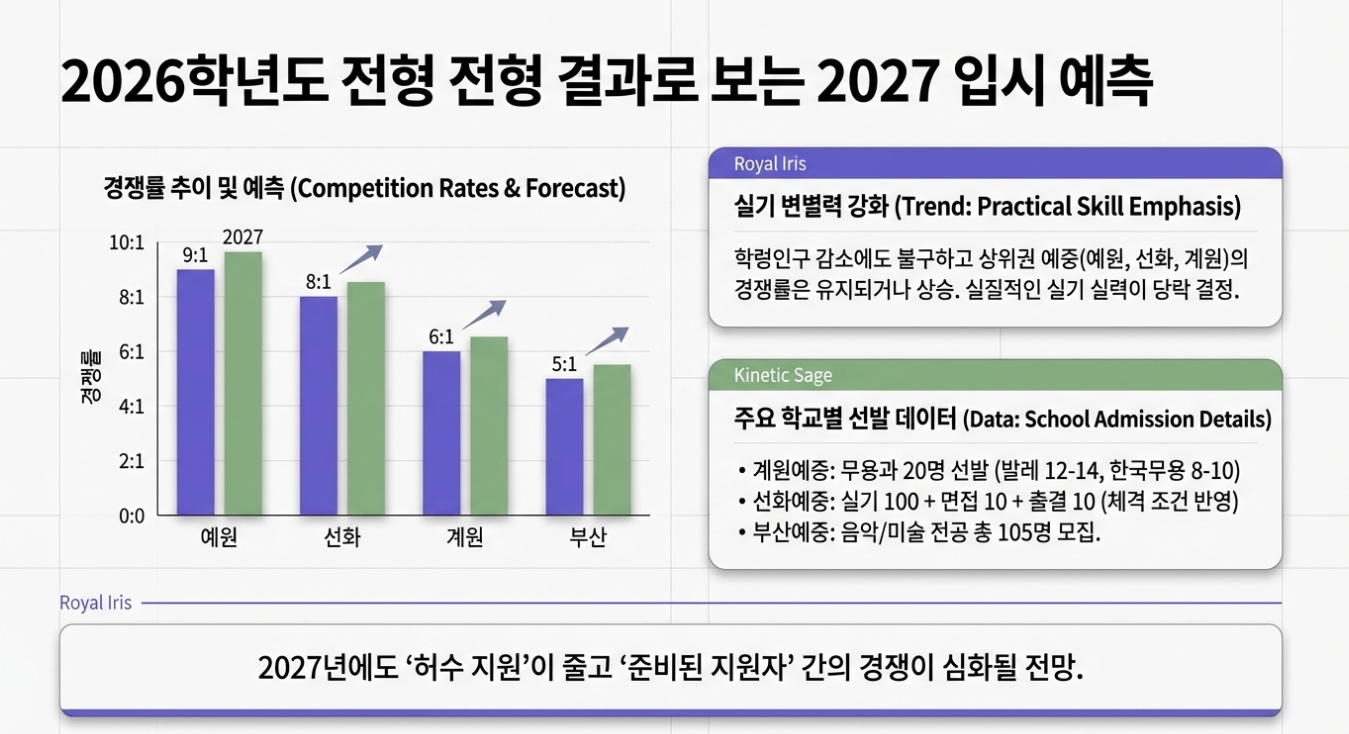 - 면접의 결정력: 실기 성적이 비슷한 학생들 사이에서 구술면접(예술적 소양) 점수가 최종 합격을 가르는 핵심 변수로 작용했습니다.